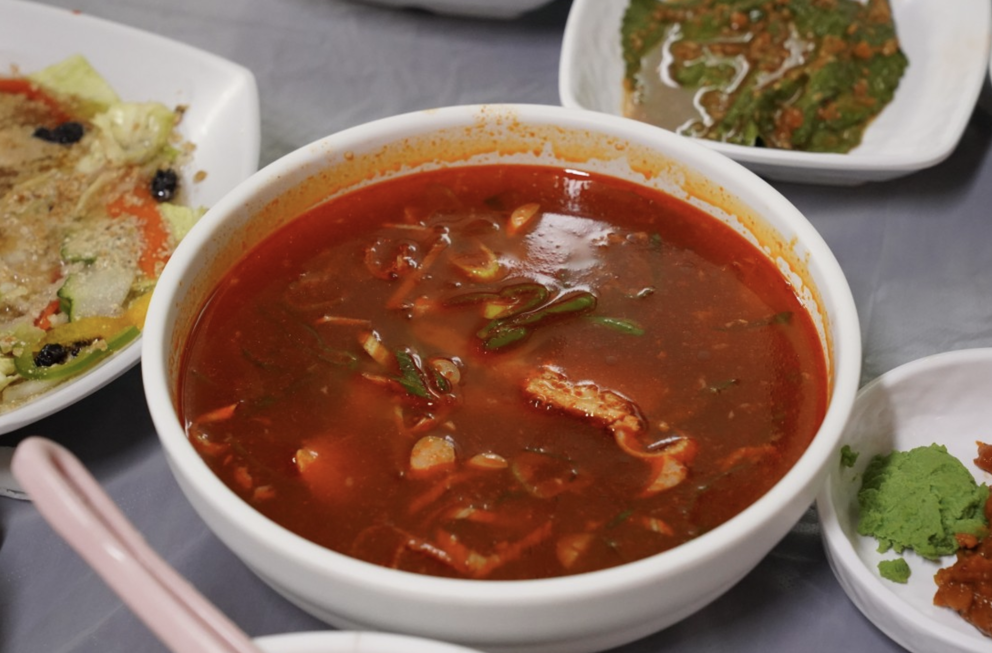 입실 후 바로 먹게 되는 점심! 조개탕 국물 한 모금에 스트레스가 싹 내려가고, 회무침과 생낙지는 싱싱함 그대로 살아있어요.