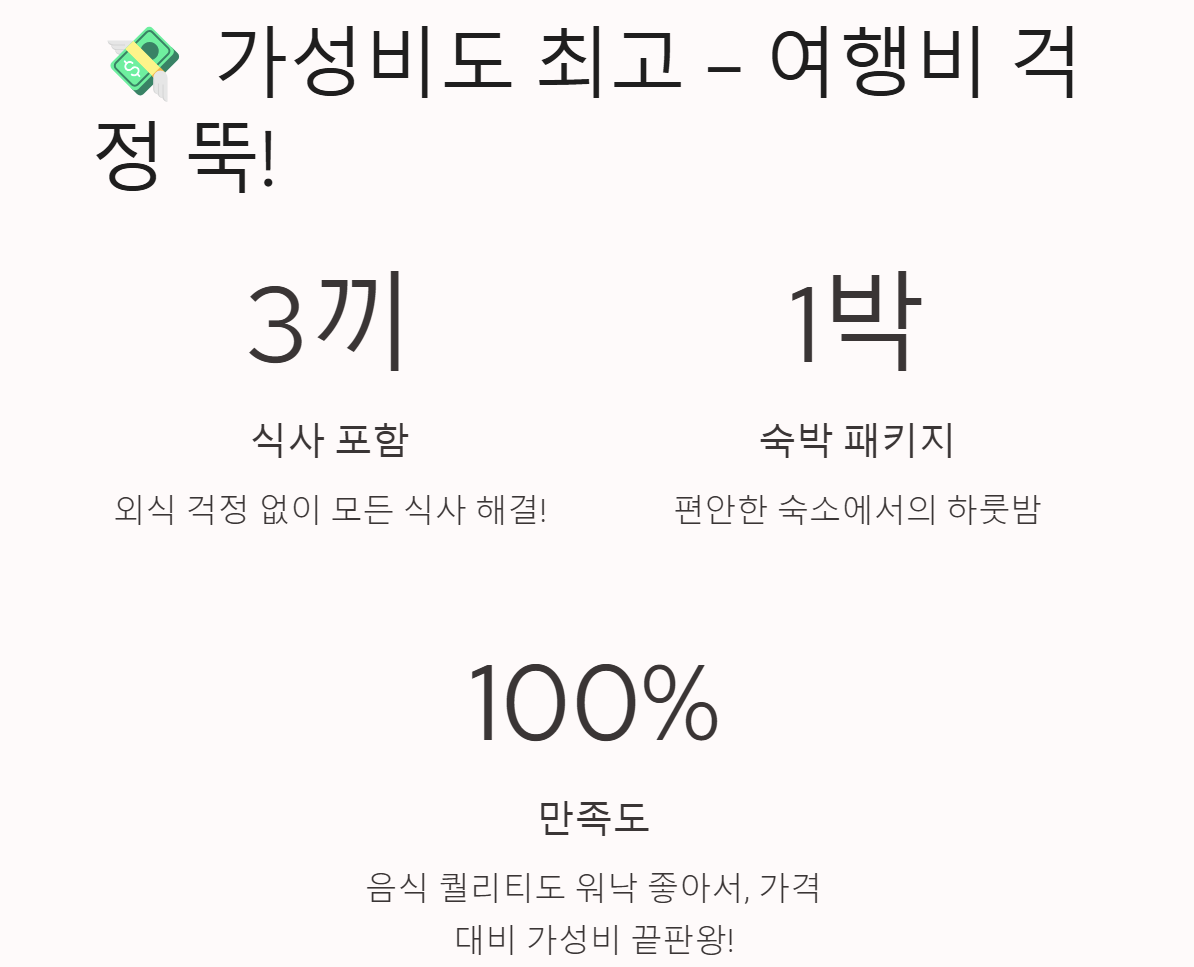 💸 가성비도 최고 – 여행비 걱정 뚝!