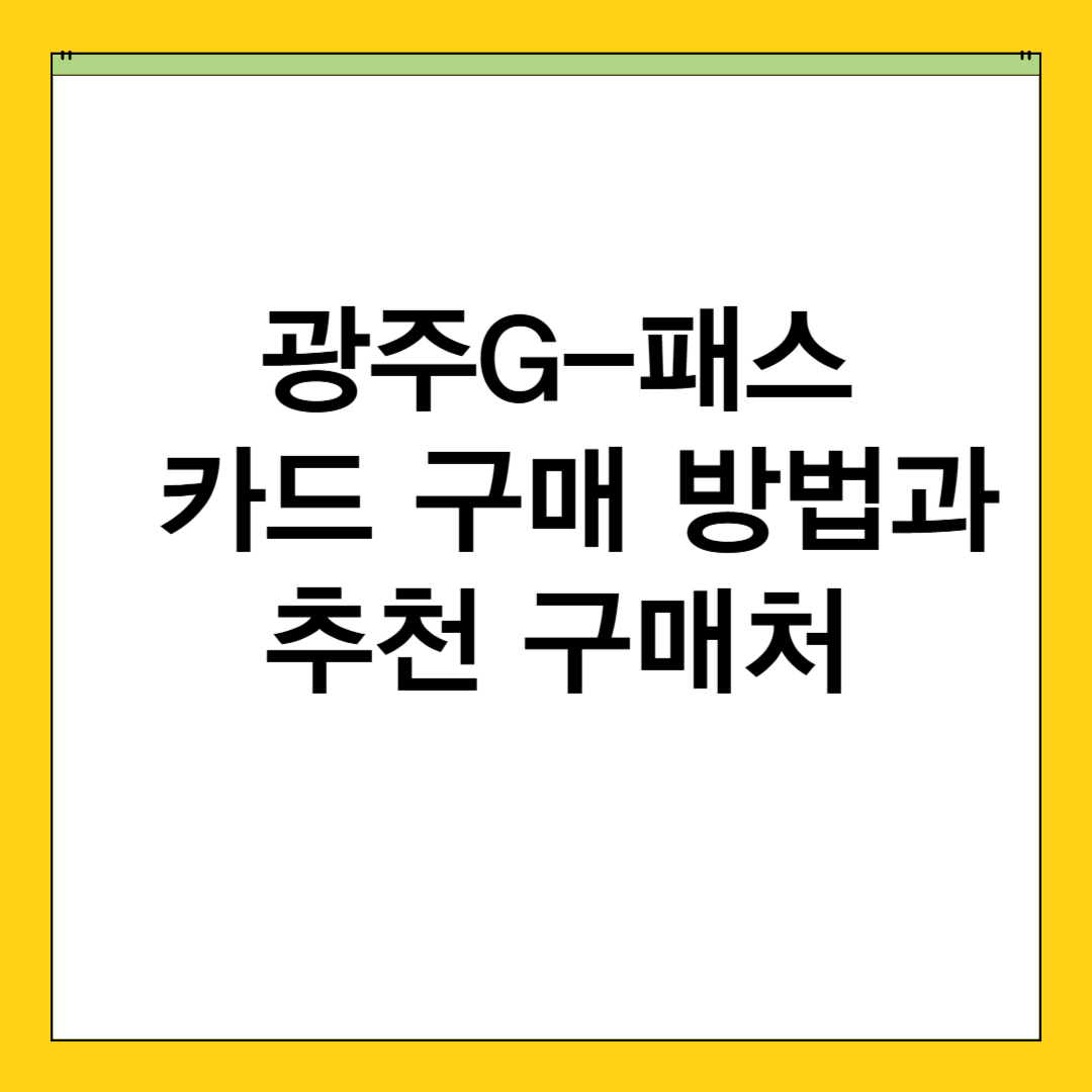 이 글에서는 광주G-패스 카드 구매 방법과 추천 구매처를 완벽하게 정리해드리겠습니다.