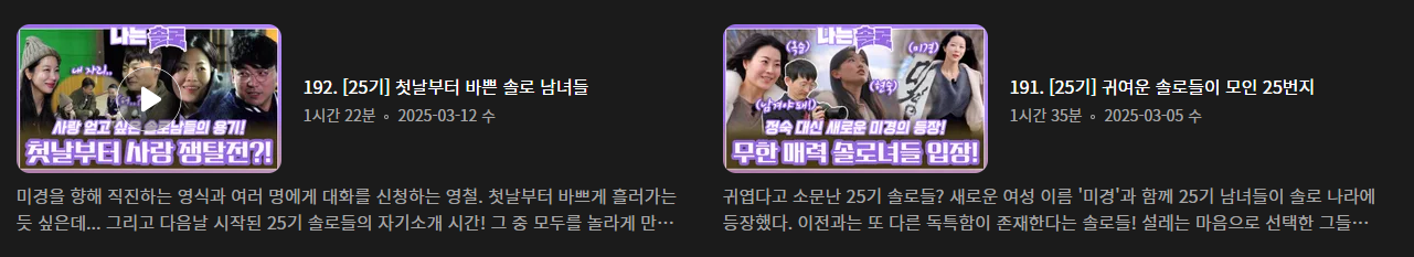 👉 '나는솔로 25기' 다시보기 및 출연자 SNS 정보는 공식 홈페이지에서 확인하세요!