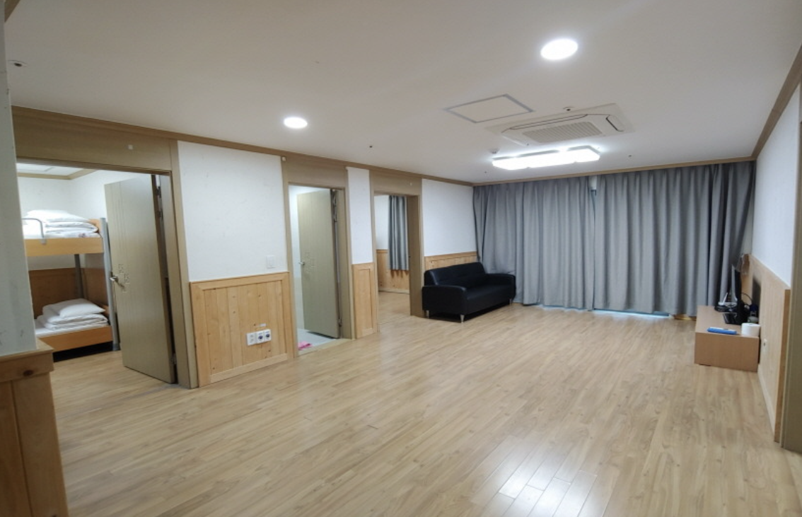 ✅ 특징: 넓은 공간, 공동 취사 시설 제공