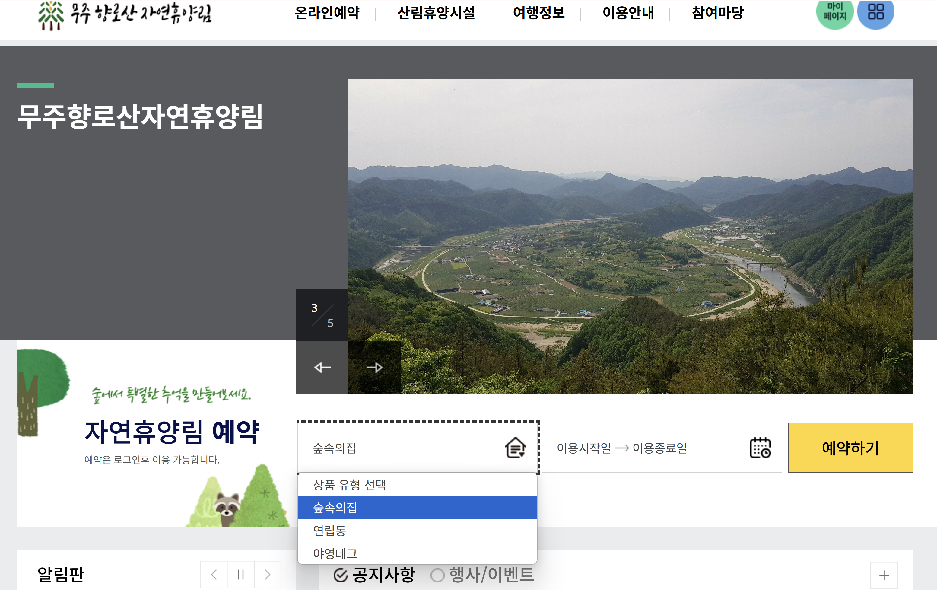 2. 무주 향로산자연휴양림 숙박 예약 방법