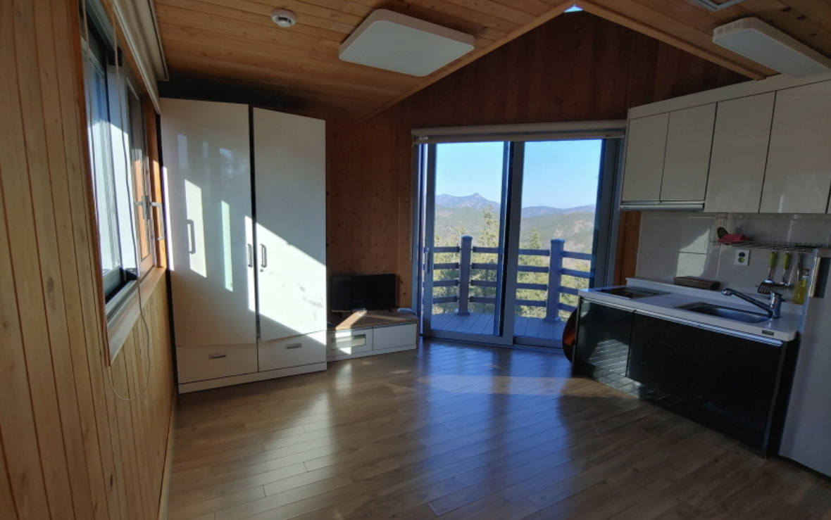 대형 창문이 있어 숲의 전경을 한눈에 볼 수 있는 숙소입니다. 감성적인 여행을 원하는 분들께 추천합니다.