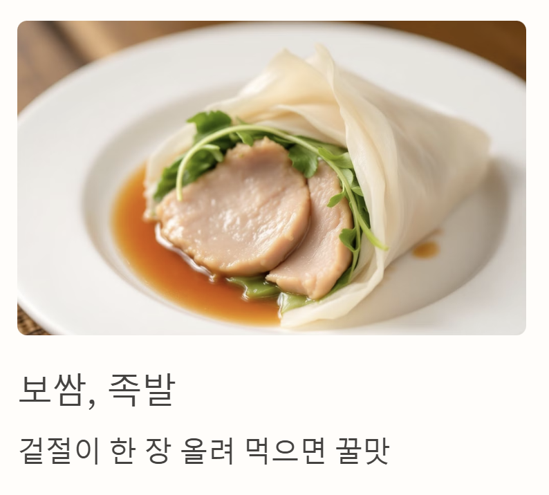 ✔ 보쌈, 족발 – 겉절이 한 장 올려 먹으면 꿀맛!