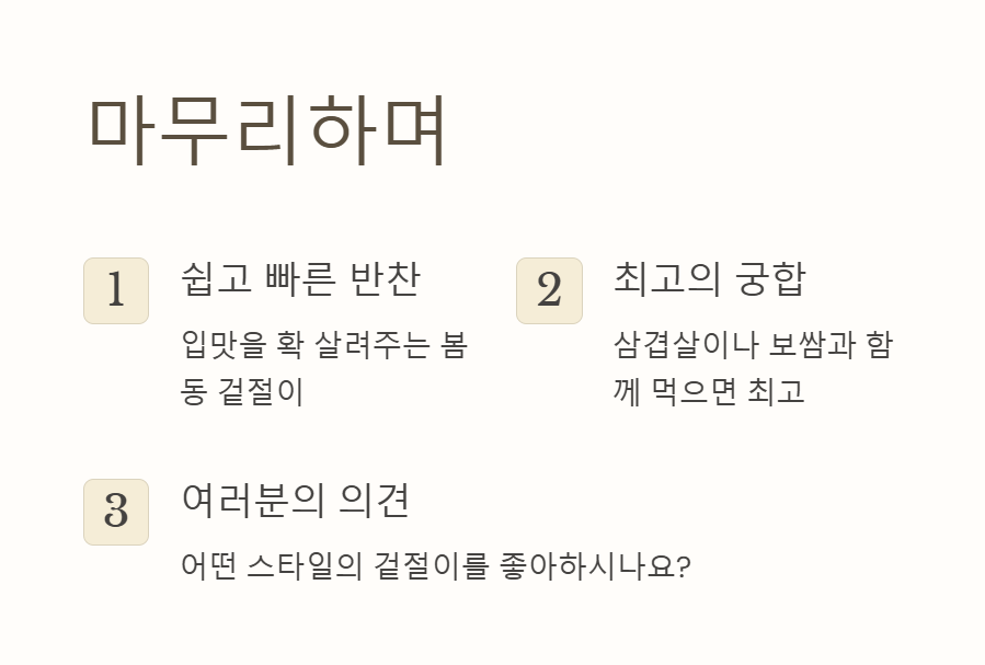 💬 여러분은 어떤 스타일의 겉절이를 좋아하시나요?