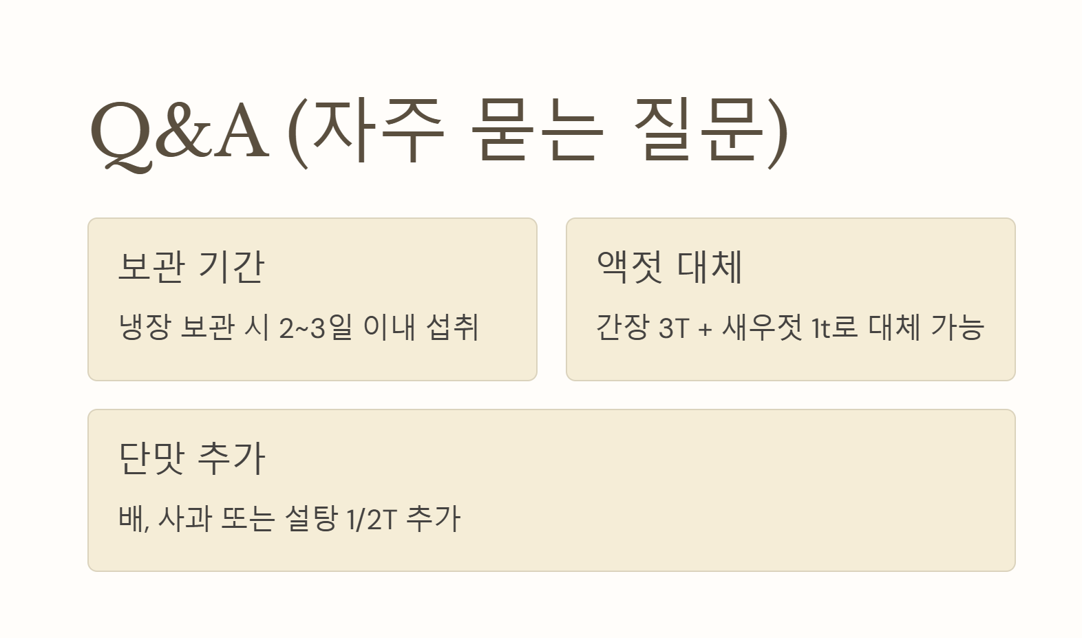 ✅ 간이 싱거우면 액젓 1작은술을 추가하세요.
