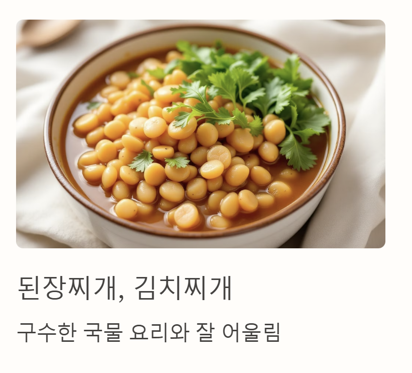 ✔ 된장찌개, 김치찌개 – 구수한 국물 요리와 잘 어울림