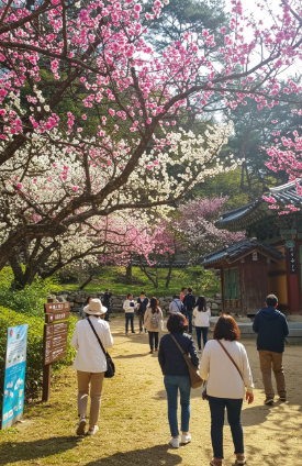 이곳에는 홍매화뿐만 아니라 백매화, 청매화까지 다양하게 피어나며, 운치 있는 산책을 즐길 수 있습니다.