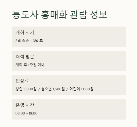 | 통도사 홍매화 주차, 입장료, 관람 시간 총정리 (0) | 2025.02.21 |