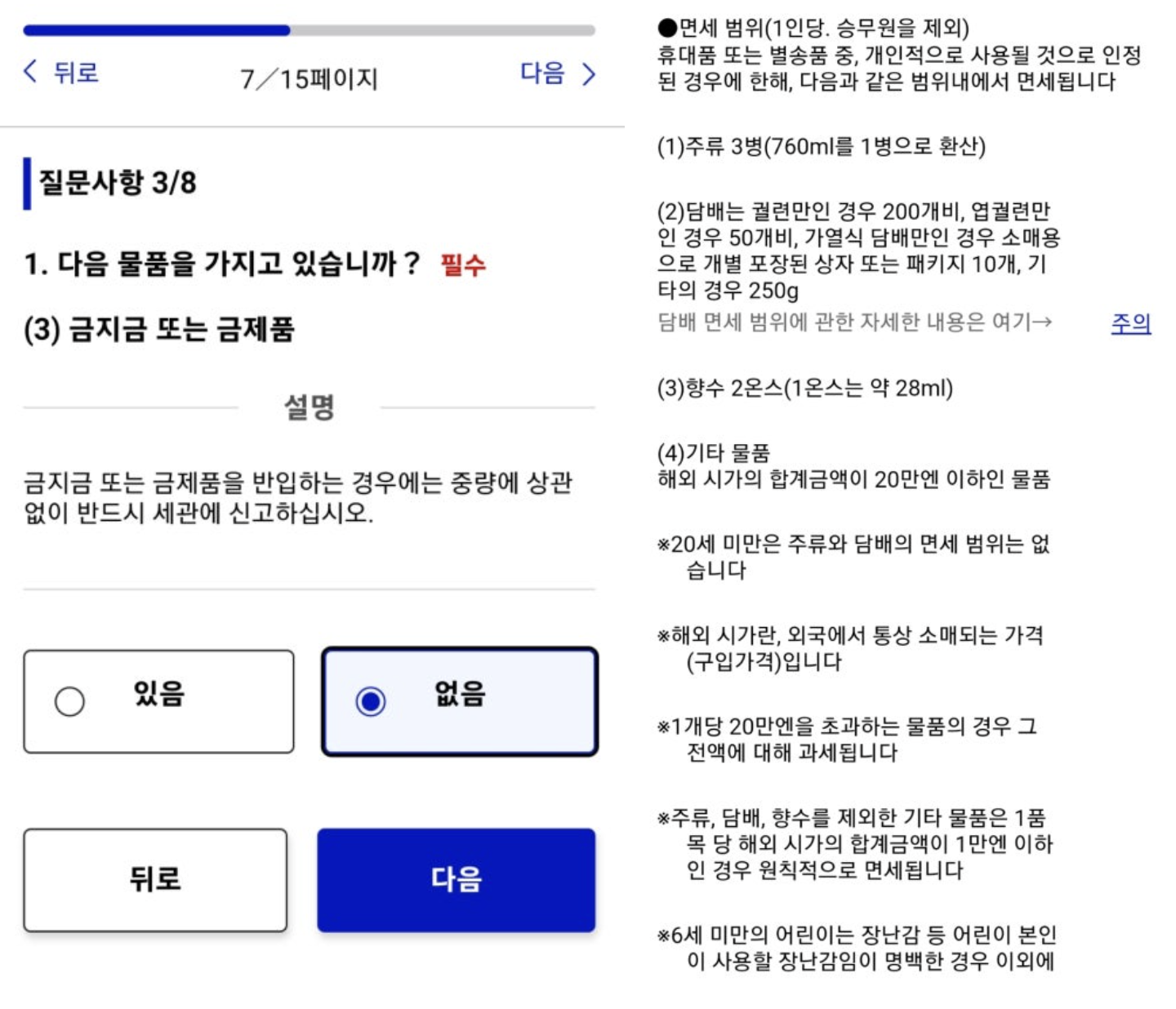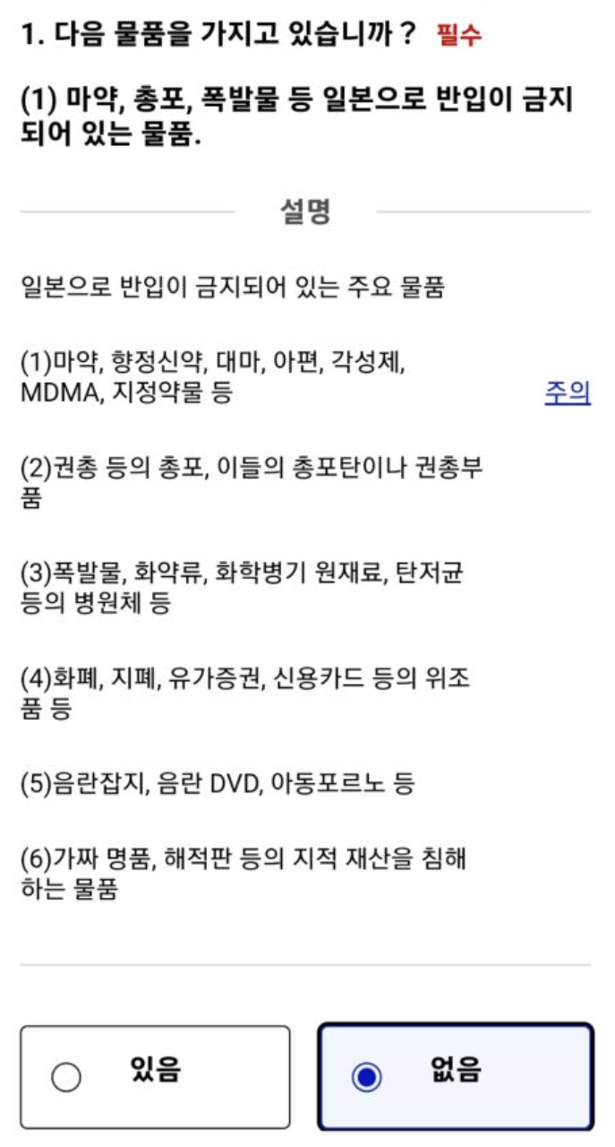 - 금제품이나 현금이 일정 금액(100만 엔) 이상일 경우 반드시 신고 필요.