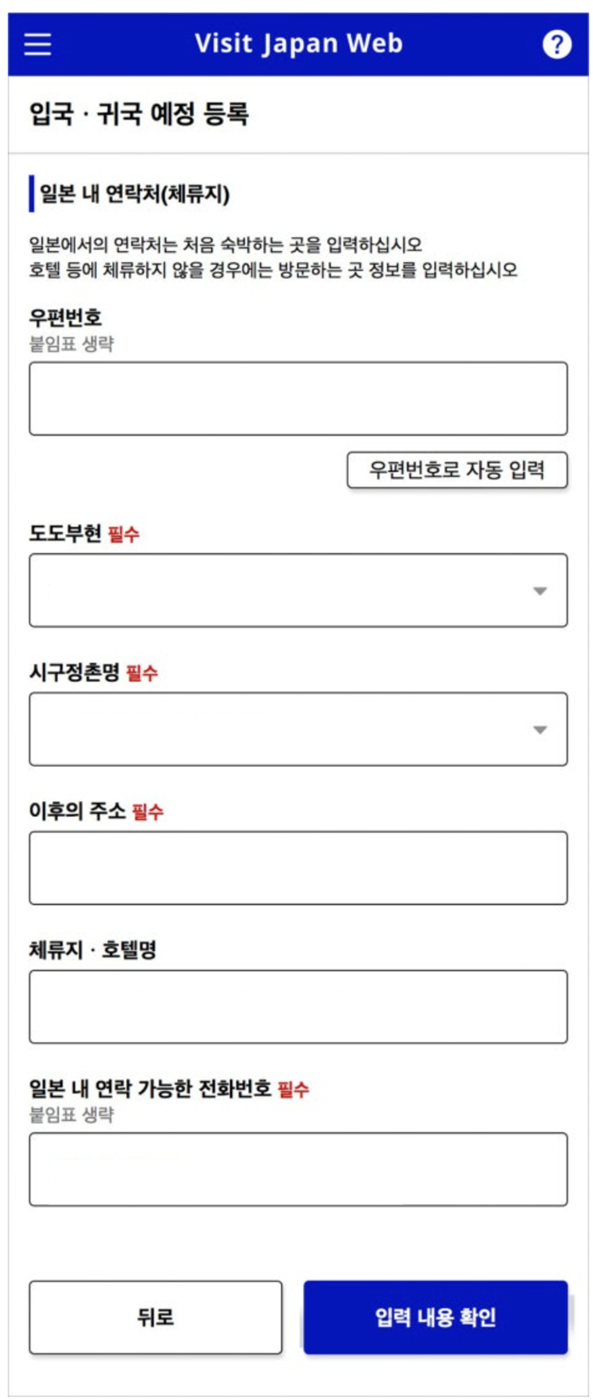 - 숙박 주소 입력(구글 검색으로 영문 주소 확인 가능).