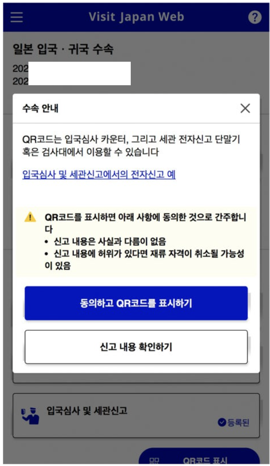 - 등록 후 생성되는 통합 QR코드는 입국 심사, 검역, 세관 신고에 모두 활용 가능