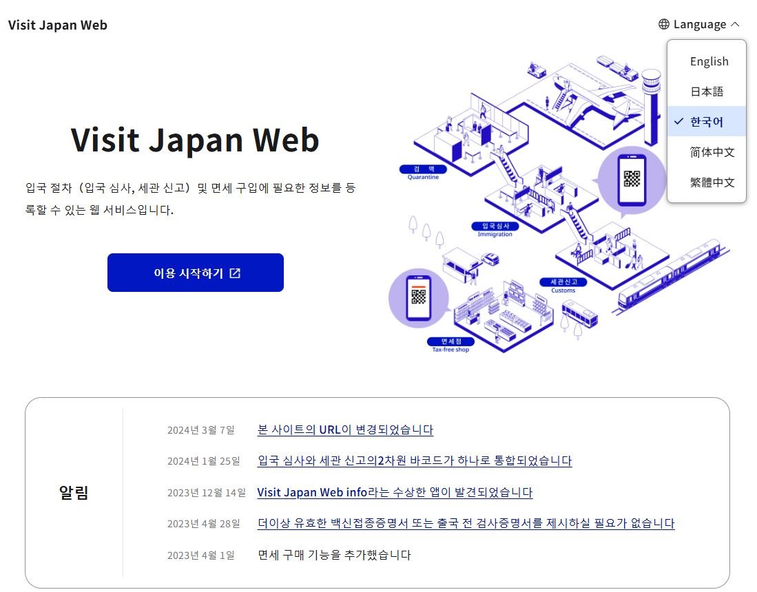 **비짓재팬 웹사이트(Visit Japan Web)**는 일본 정부가 운영하는 공식 플랫폼으로, 입국 신고서와 세관 신고서를 대체해 간편하게 작성하고 QR코드를 발급받아 입국 절차를 간소화할 수 있도록 도와줍니다.