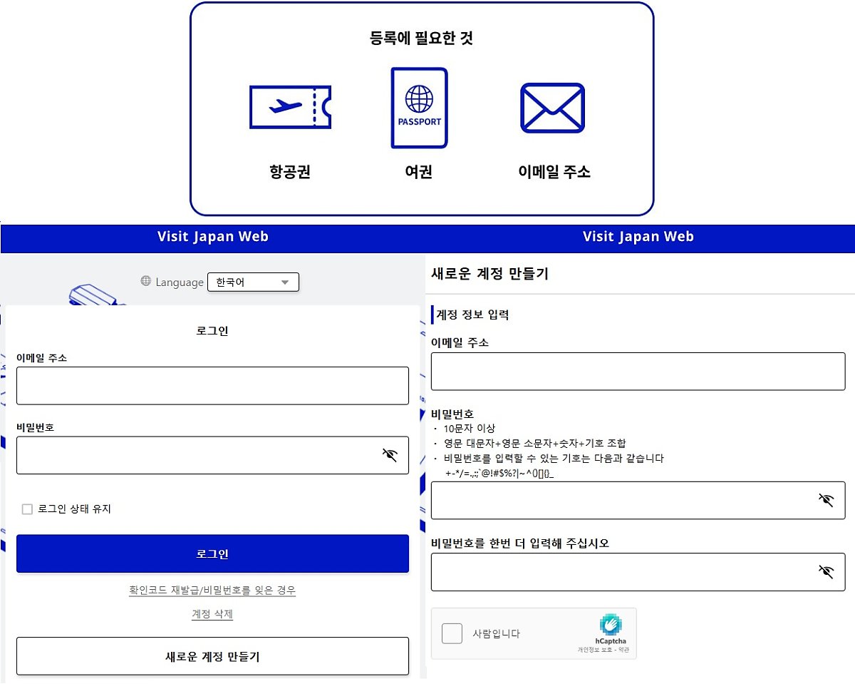 - Visit Japan Web에 접속하여 이메일로 계정을 생성합니다.