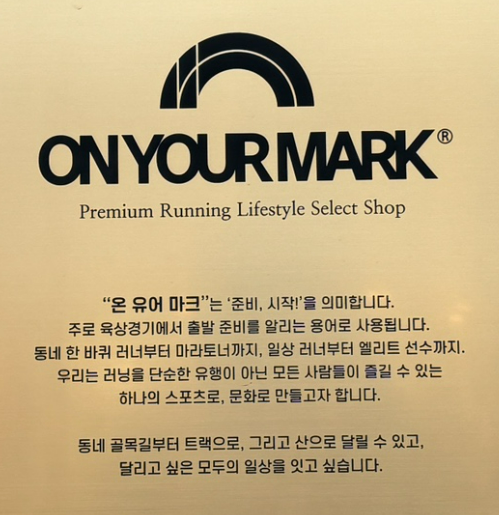 러닝을 사랑하는 사람들을 위한 공간, **온유어마크(ONYOURMARK)**는 단순한 러닝화 편집샵을 넘어, 러너들의 커뮤니티이자 문화 공간으로 자리 잡고 있습니다. 온유어마크는 "On Your Mark, Get Set, Go!"에서 유래된 이름처럼, 러너들이 언제든지 준비된 상태에서 출발할 수 있도록 돕는 곳입니다.