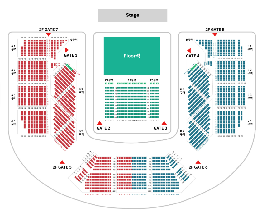 - 플로어석 (A, B, C, D, E, H 구역) – 무대와 가장 가까운 좌석