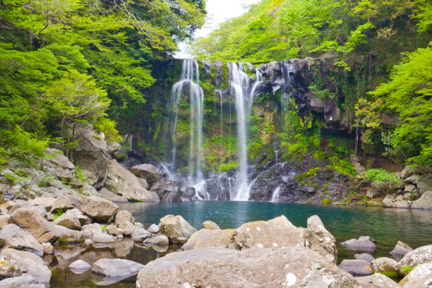 • 서귀포시에 위치한 정방폭포는 제주도에서 유일하게 바다로 직접 떨어지는 폭포이다. 봄이 되면 폭포 주변으로 벚꽃이 피어나 색다른 분위기를 연출한다. 폭포와 벚꽃을 동시에 감상할 수 있어 독특한 명소로 추천된다.