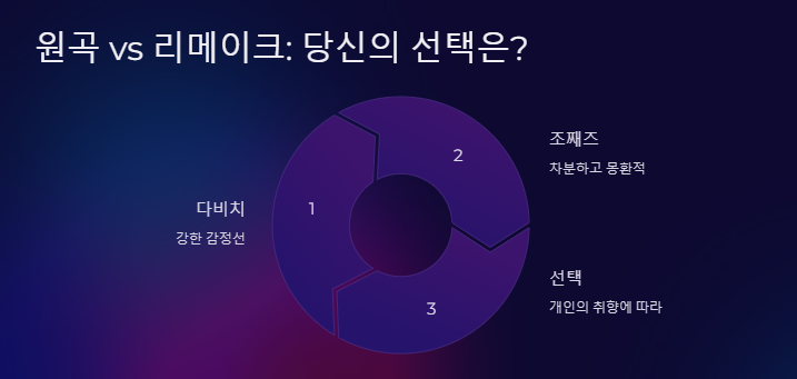 여러분은 원곡과 리메이크 중 어떤 버전이 더 마음에 드시나요? 댓글로 의견을 남겨주세요! 😊