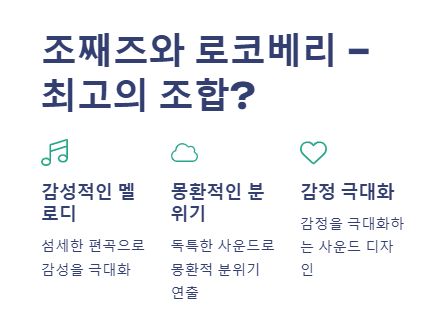 조째즈는 이런 로코베리의 감성을 완벽하게 소화하며, 자신만의 색깔을 입혀 더욱 독창적인 음악을 선보이고 있습니다.
