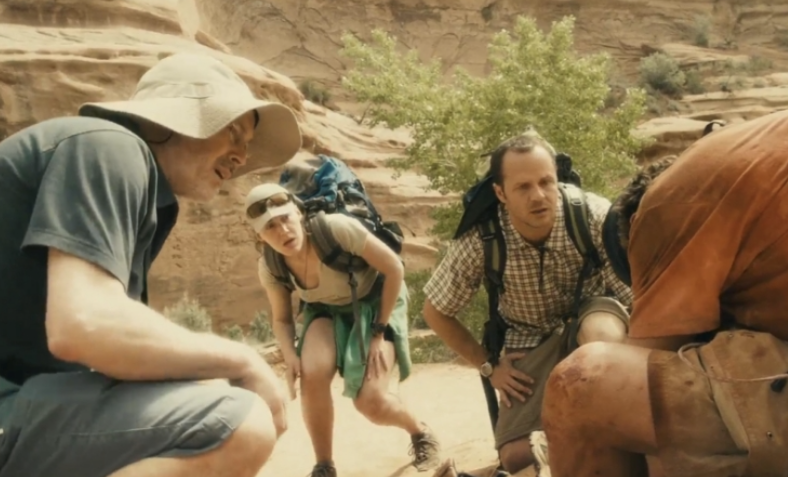 - 그는 온갖 방법으로 팔을 빼내려 하지만 돌은 꿈쩍도 하지 않고, 도움을 요청할 수도 없는 상황에 빠집니다.