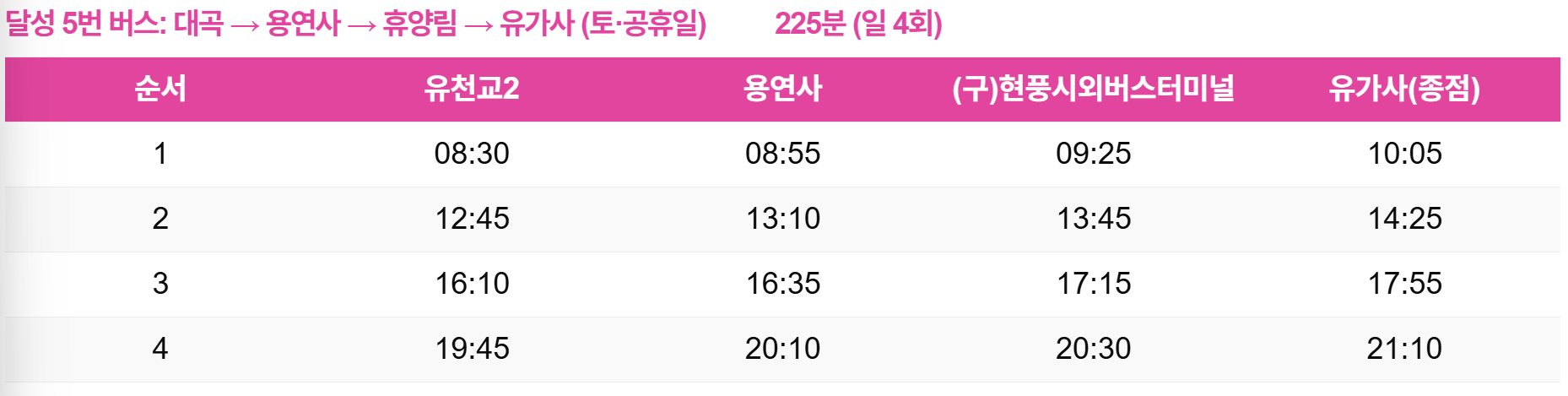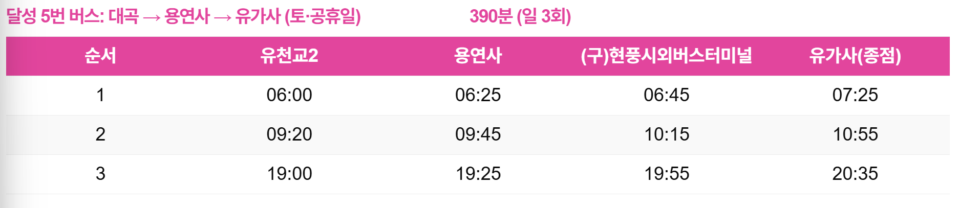 - 달성 5번 또는 달성 6번 버스 탑승 → 유가사 입구 하차