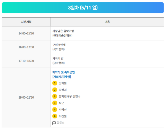 2일차 (5월 10일 토요일) - 본행사 및 축하공연