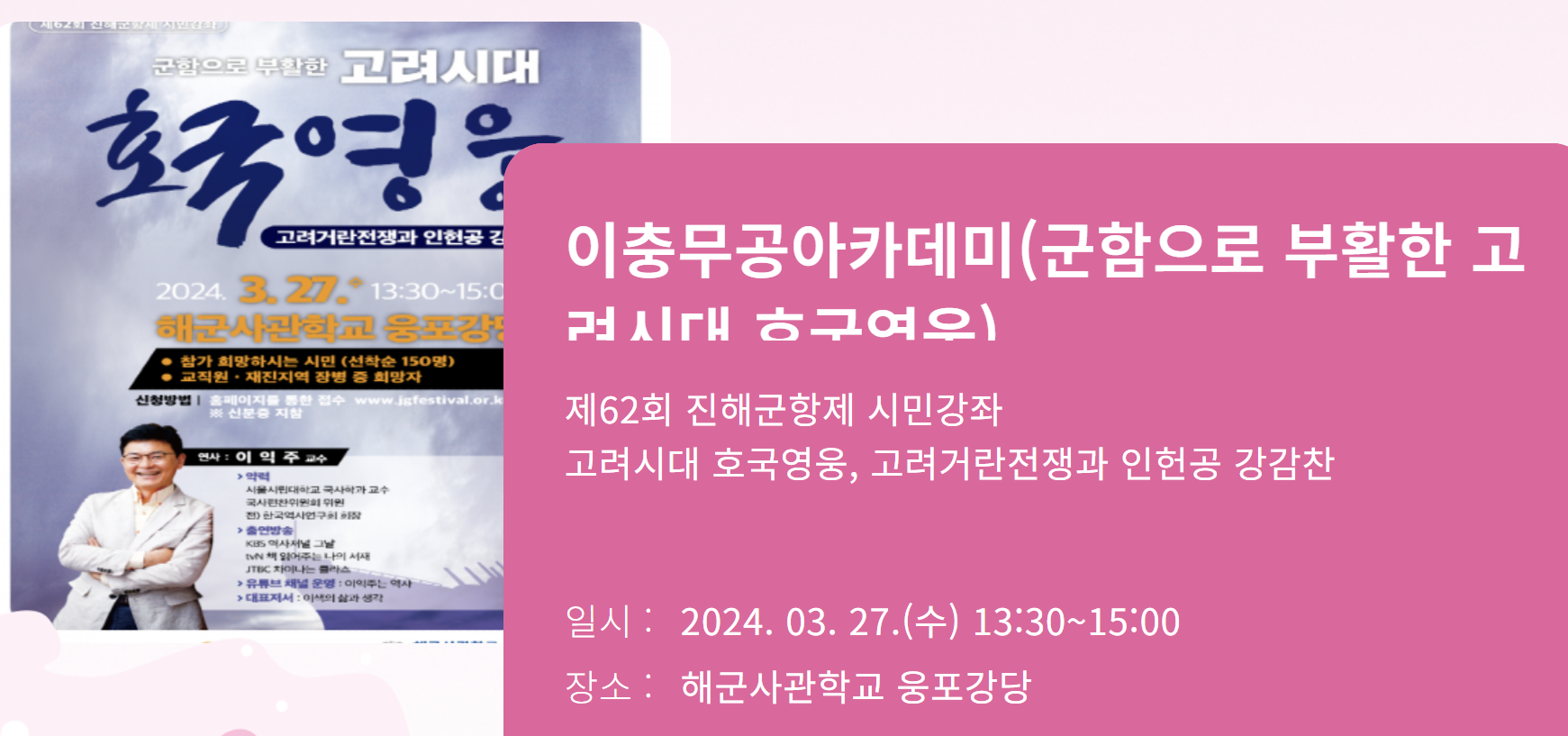📌 4월 2일 저녁 18:00, 진해루 일원에서 개최