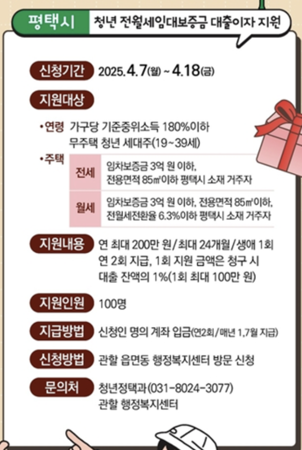 2025년에도 평택시 청년을 위한 주거비 지원은 계속됩니다.