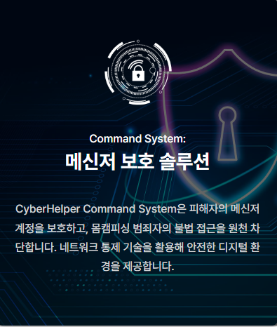 A. 사이버헬퍼는 SNS 범죄 예방부터 피해 대응, 사후 관리까지 책임지는 종합 보안 서비스입니다. 몸캠피싱, 피싱 링크, 계정 해킹 등 다양한 사이버 범죄로부터 사용자를 보호하며, 실시간 탐지 및 맞춤형 보안 솔루션을 제공합니다.