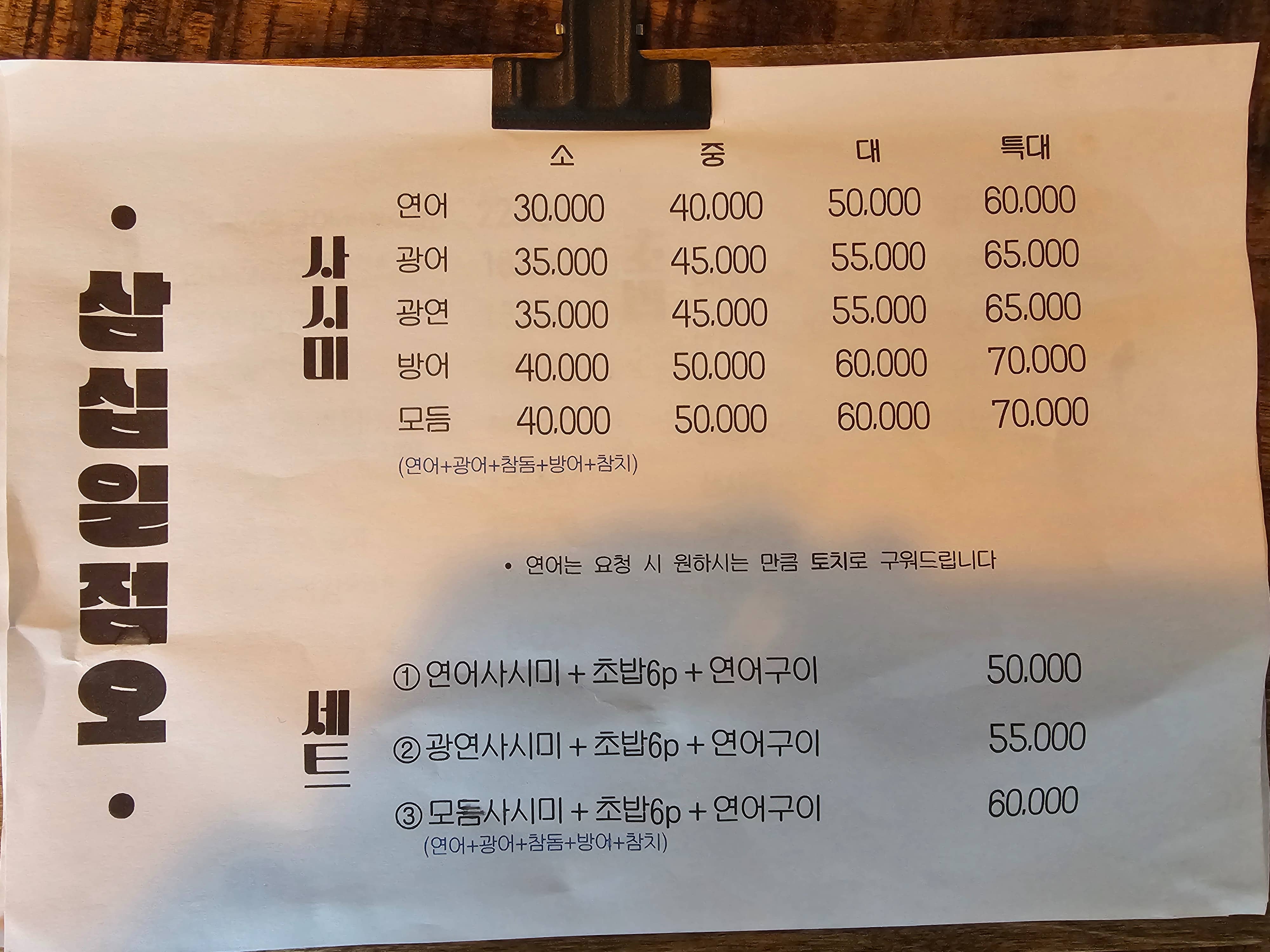 • 연어 초밥: 초밥용 밥과 감태를 함께 제공하여, 손님들이 직접 초밥을 만들어 먹는 독특한 경험을 제공합니다.
