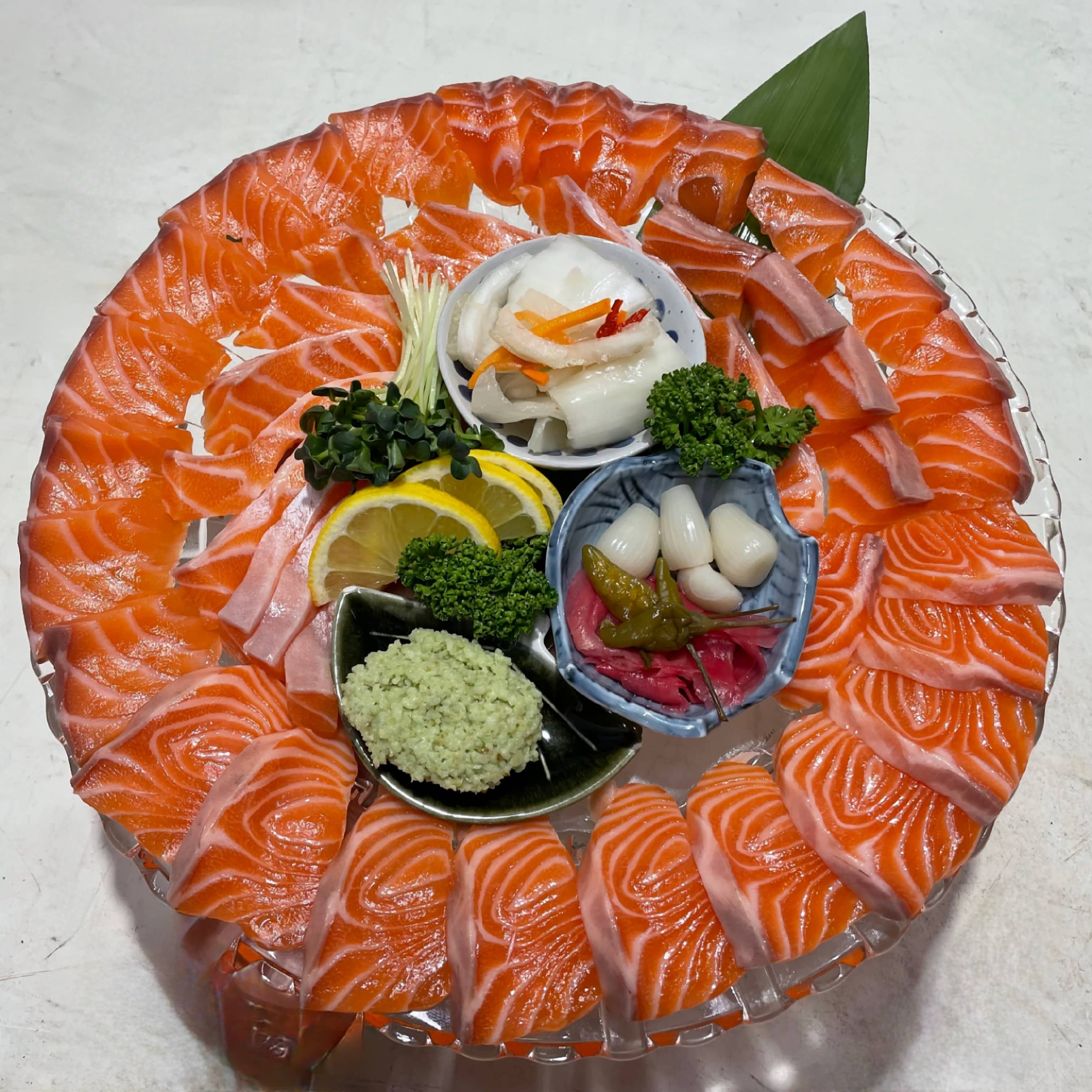 • 신선함이 생명인 연어 사시미는 두툼하게 썰어내어 연어 본연의 풍미를 극대화합니다. 요청 시, 가볍게 구운 연어도 제공됩니다.