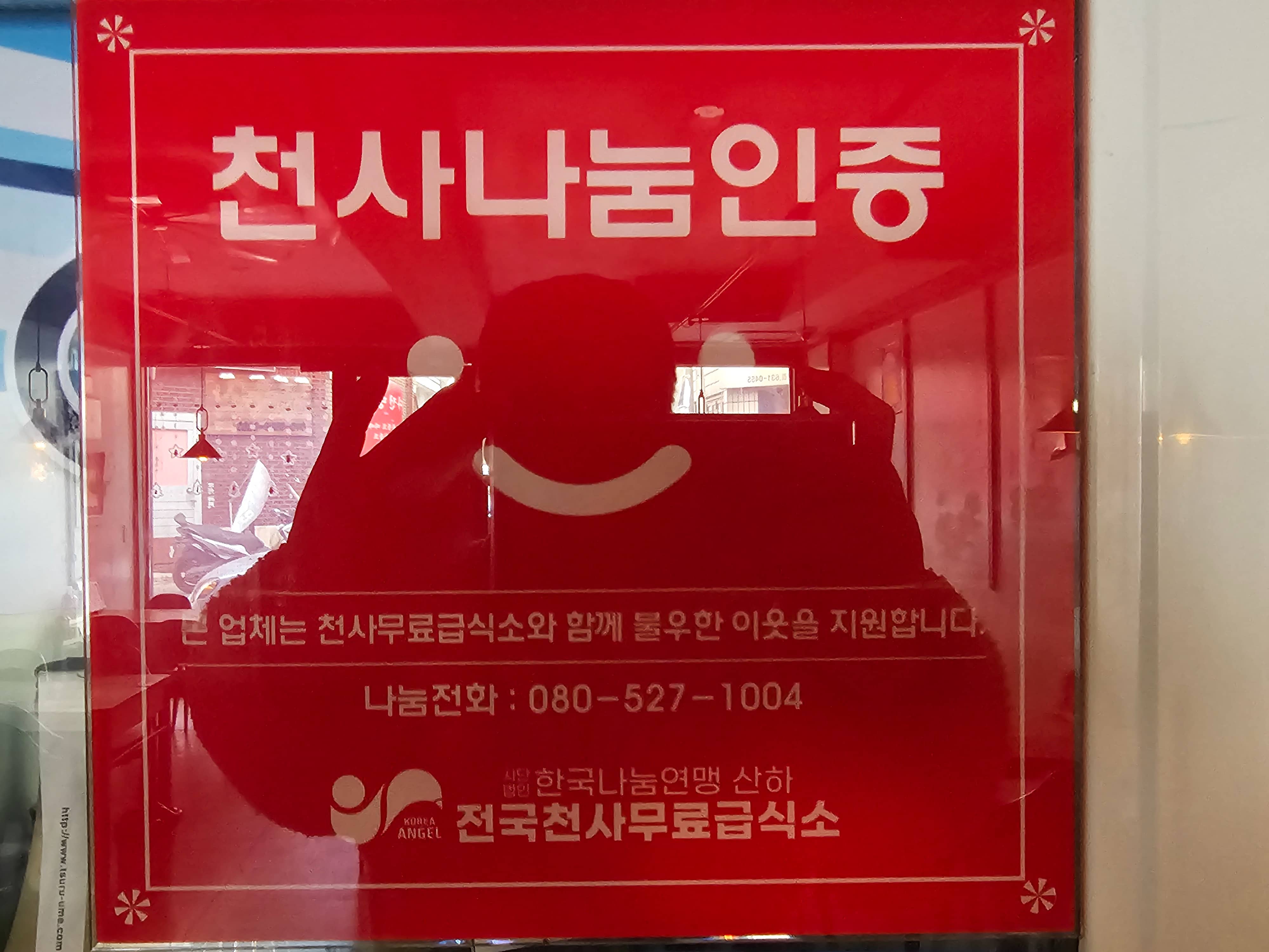 • 천사나눔 인증: 본 매장은 천사무료급식소와 협력하여 불우한 이웃을 지원하고 있습니다. 방문객들의 한 끼가 도움이 필요한 이웃들에게 큰 희망이 됩니다.