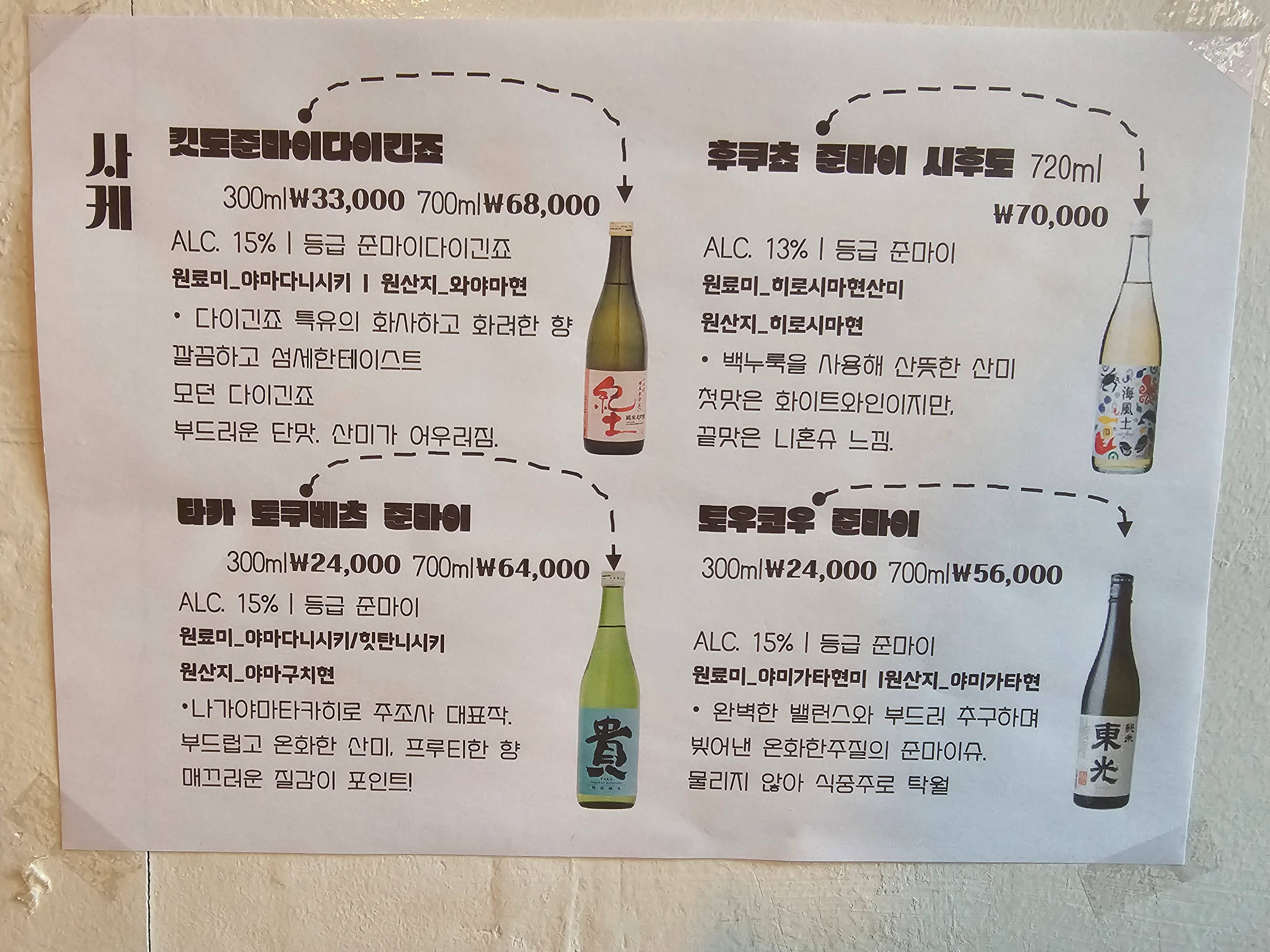• 연어 요리에 곁들이기 좋은 사케, 하이볼, 일본 맥주 등이 다양하게 준비되어 있어 식사의 완성도를 높입니다.