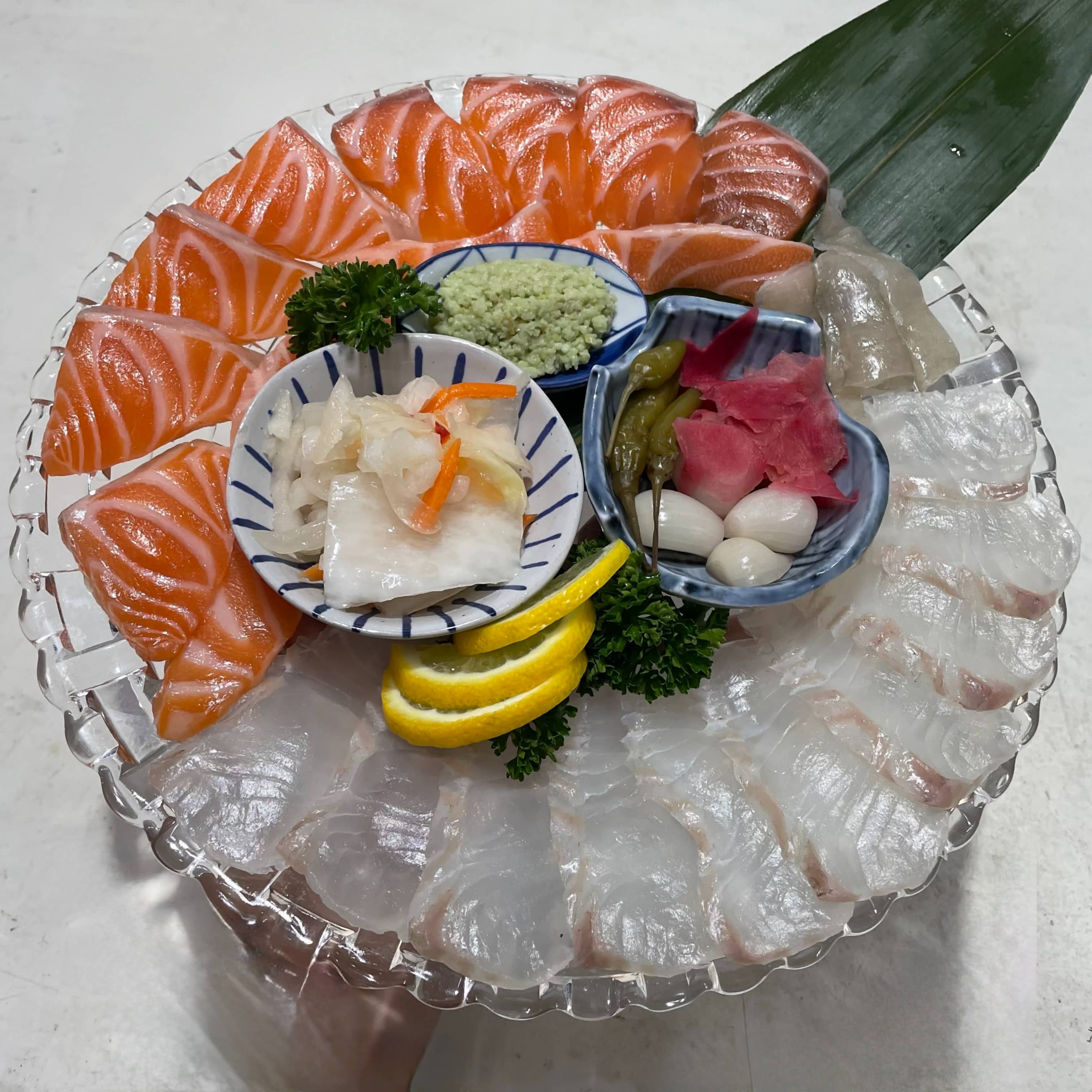 • 서로 다른 질감과 맛을 가진 광어와 연어를 한 접시에 담아낸 인기 메뉴입니다.