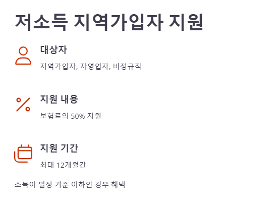 이번 개편에서는 소득이 일정 기준 이하인 지역가입자에게 최대 12개월간 보험료의 50%를 지원하는 제도가 생깁니다.