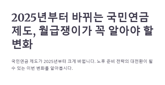 - [2025년부터 바뀌는 국민연금 제도, 월급쟁이가 꼭 알아야 할 변화]