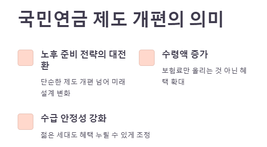 📈 2. 소득대체율 인상: "은퇴 후 생활 수준, 더 보장된다"